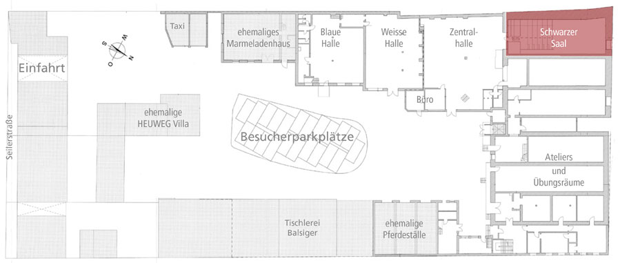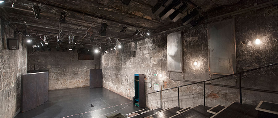 Der Schwarze Saal mit ca. 200 qm Grundfläche ist die "Keimzelle" des Theaters in der EISFABRIK. Die Bühnenmaße: 7,50 x 10 x 5,50m. Der Zuschauerraum hat 99 Plätze.